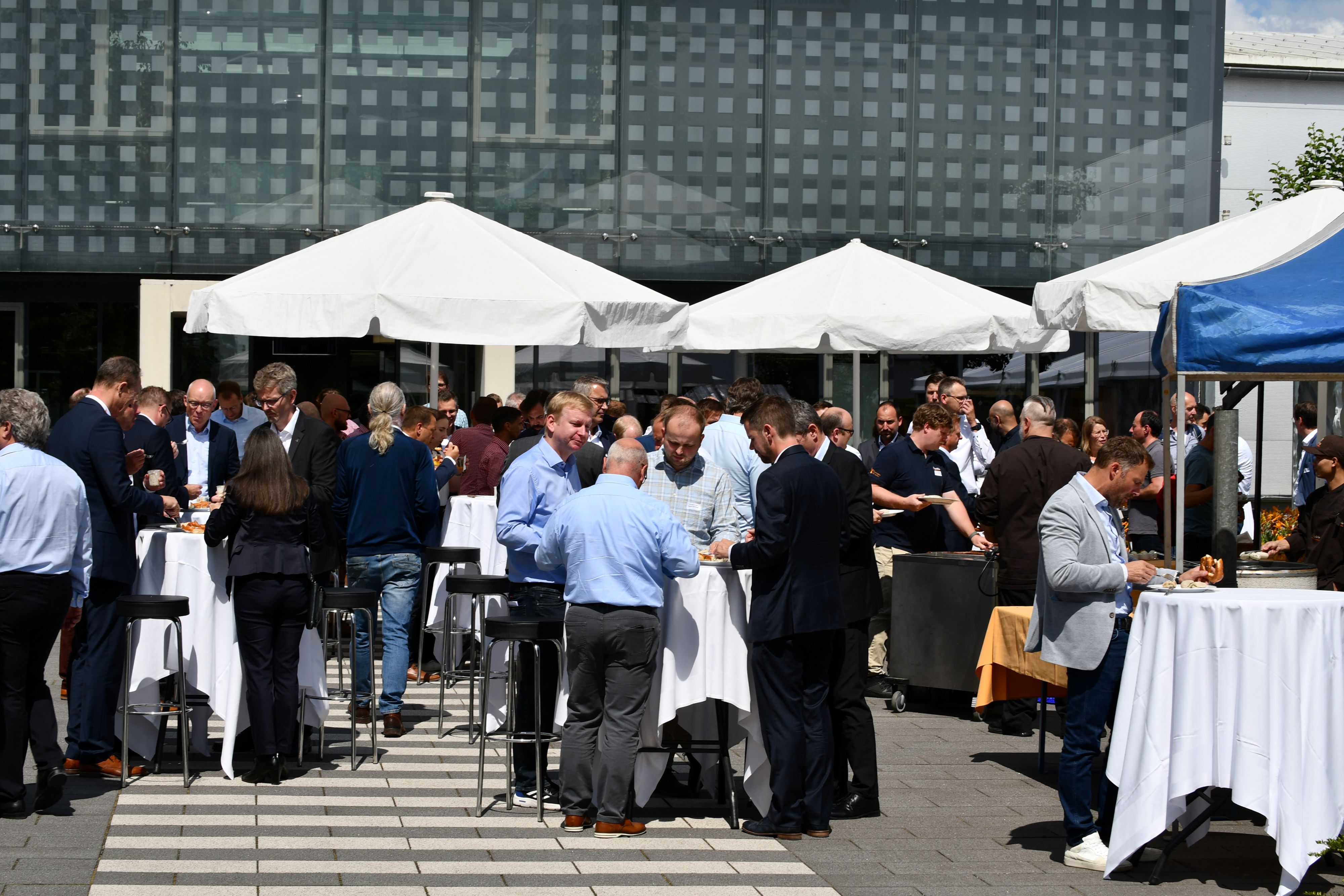 Die Mitarbeiterinnen und Mitarbeiter von Hufschmied kümmerten sich aufmerksam um die Aerospace-Gäste und waren jederzeit durch ihr alpenländisches Outfit als Kontakt für Fragen zu erkennen.