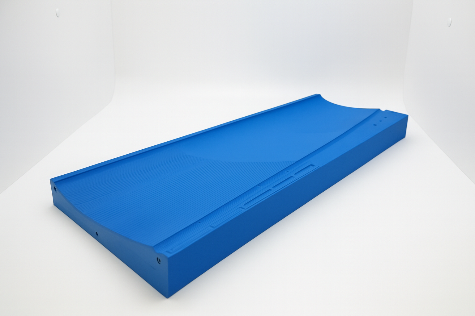 Diese Ureol-Form zum Legen des CFK-Gewebes für eine Nurflügler-Drohne wurde höchst effizient hergestellt mit dem Blockbuster, einem Schrupp-Schlicht-Werkzeug für Kunststoffblockmaterialien.