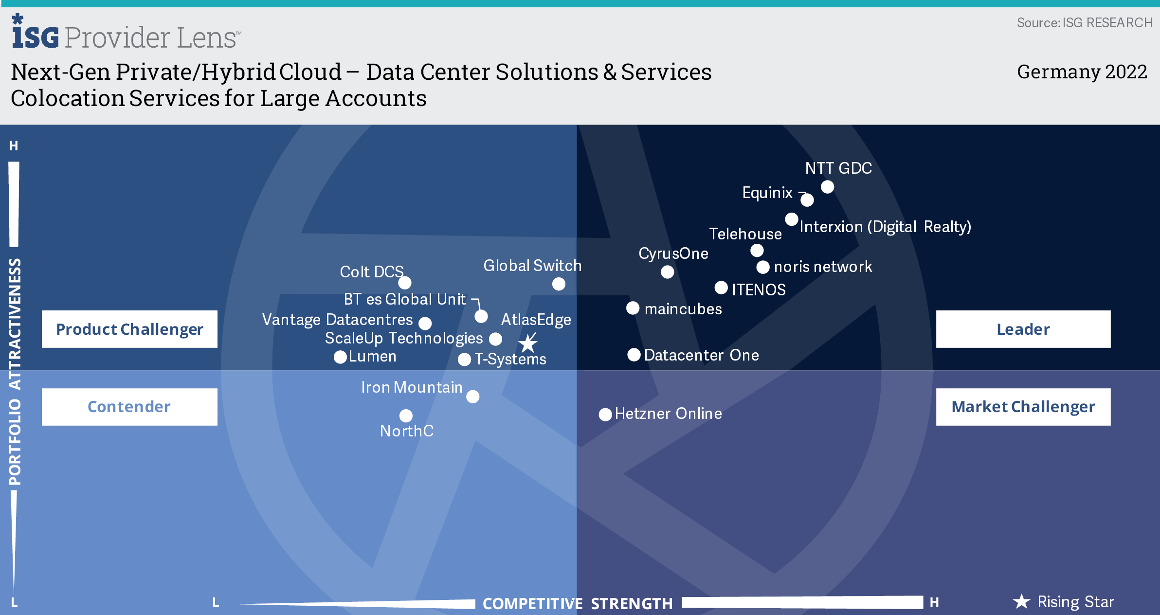 noris network wurde von der Information Services Group Germany (ISG) zum Leader im Marktsegment „Colocation Services for Large Accounts“ ernannt.