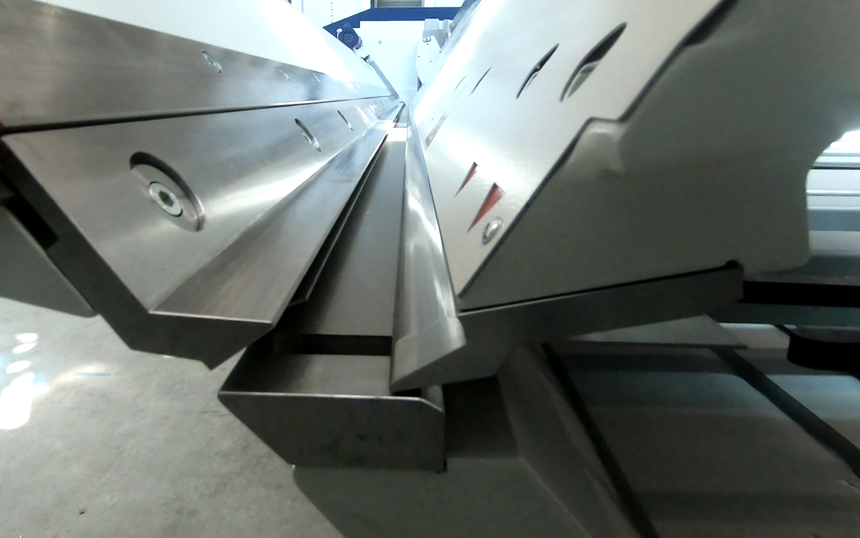 The PowerBend Multi (PBM) folds up to 2.5 mm thin sheets. Schröder demonstrates another innovation with this machine. It has a rotating clamping beam that allows you to switch to a different geometry or tool station. This clamping beam also enables a patented process for folding hems. It is reset and the sheet metal is clamped so that the folding beam has space beyond the vertical. In this way, folding hems can be bent and pressed in a single operation – precisely and in a time-saving manner. The model on display at the exhibition demonstrates this on a 2 mm thick steel sheet with a length of 3200 mm.